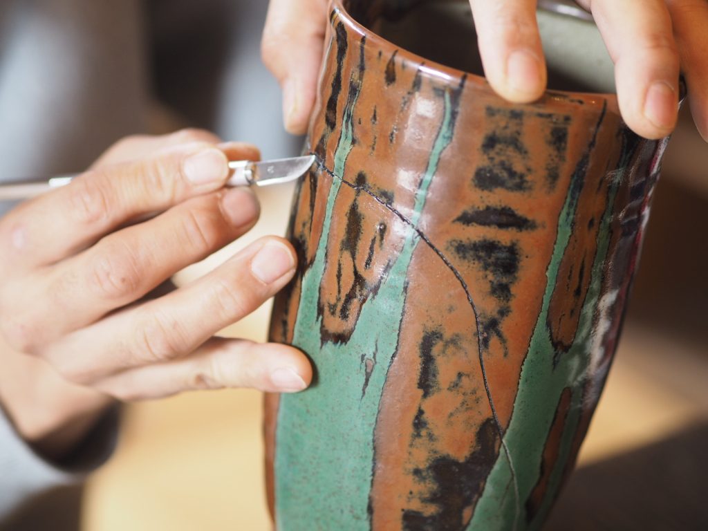 最後に割れた花瓶のような置物を見つける。この子はうちのキッチンに来るぞ!とピンときた。というのも、キッチンスツール、おたまやヘラなど長物用の大きな入れ物をずっと探していて、重さ、フォルムを見て、これだ!!と確信した。修復して使いたいと話させてもらい、譲っていただけることに。
